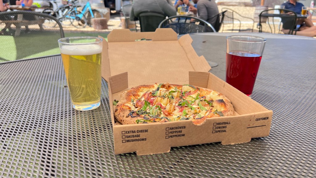 For our beverages I went with the Van Henion Kolsch which I had a taster glass at Bend Brewfest and was excited to have a nice cold pint. It compliments well as it’s nice and light with a full malty flavor, perfect for a hot summer day and a pizza pie for lunch.
