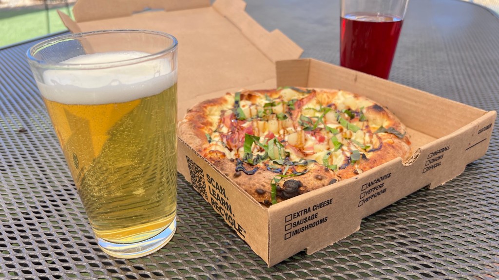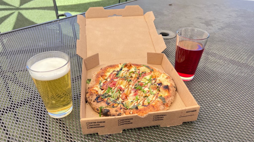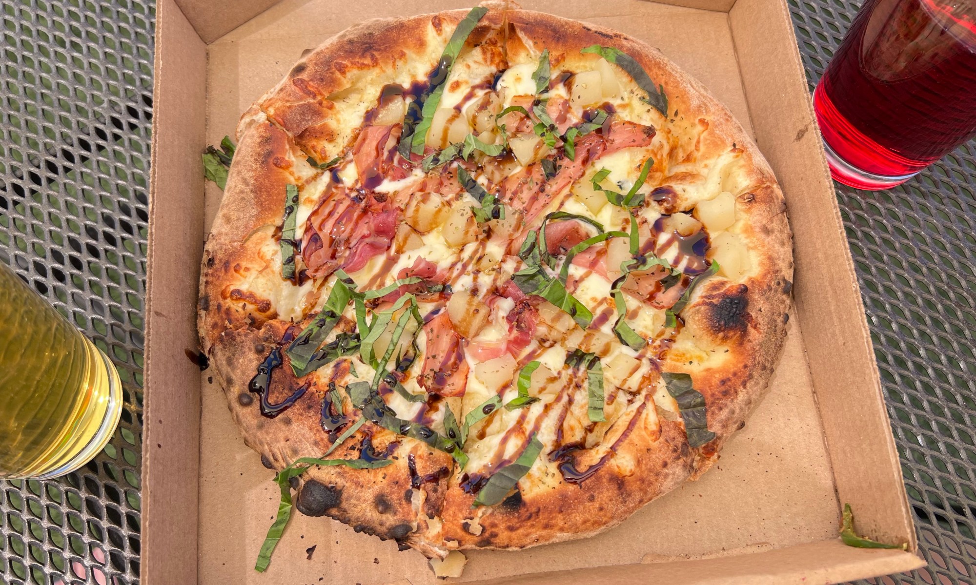 The crust was A light, buttery, and crisp crust topped with thinly sliced prosciutto, pear chunks which were solid and sweet. The basil compliments on the back end nicely and it’s topped with a sweet balsamic glaze that really rounds out a nice pie.