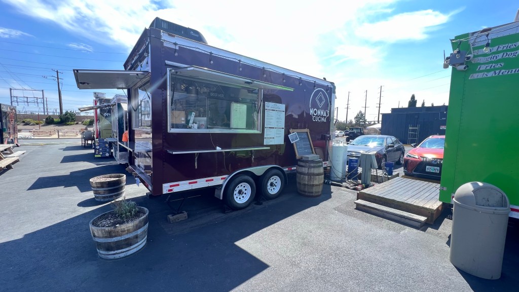 Well here we are out and about thrifting for books again and needing a bite to eat in Redmond, and after a successful trip to That Guy’s Bistro at General Duffy’s Watering Hole, we’re back with a new truck! Nonna’s Cucina!