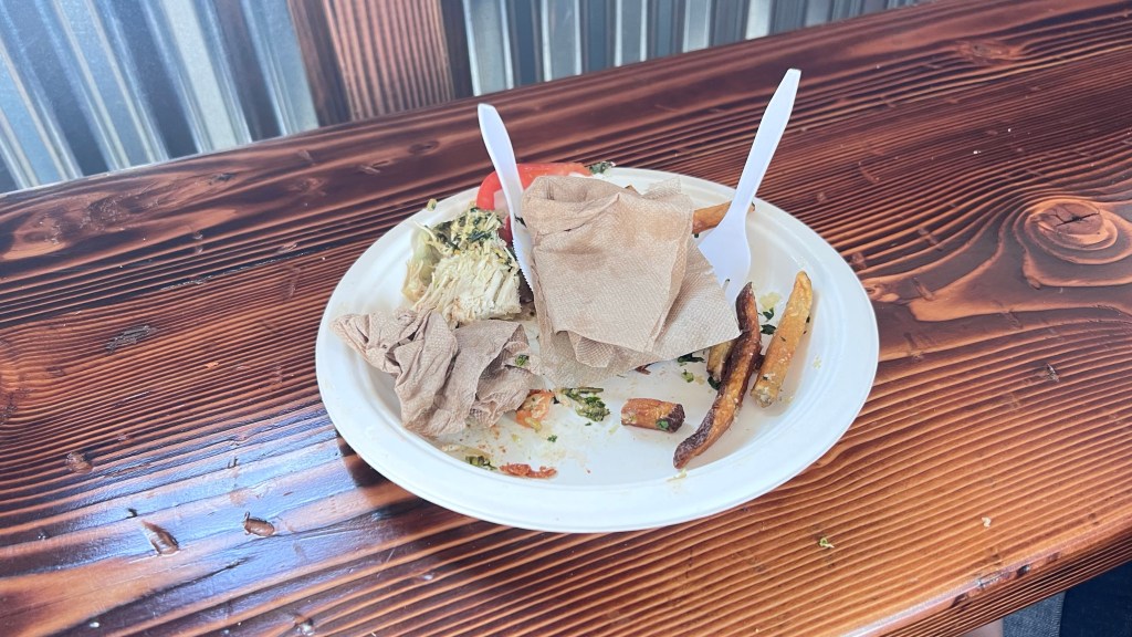 We went with the garlic fries on their recommendation & I have to say, this sandwich was delicious & the fries were crispy & flavorful. The bread, like at Sunriver Brewing Co, was hard, but it worked well with the wet textures of the sandwich and sauce, it had a crunch to it, not chewy like Sunriver Brewing Co.. The cheese melted nicely keeping things mostly intact, and the balsamic glaze was an absolute game changer to my taste buds.