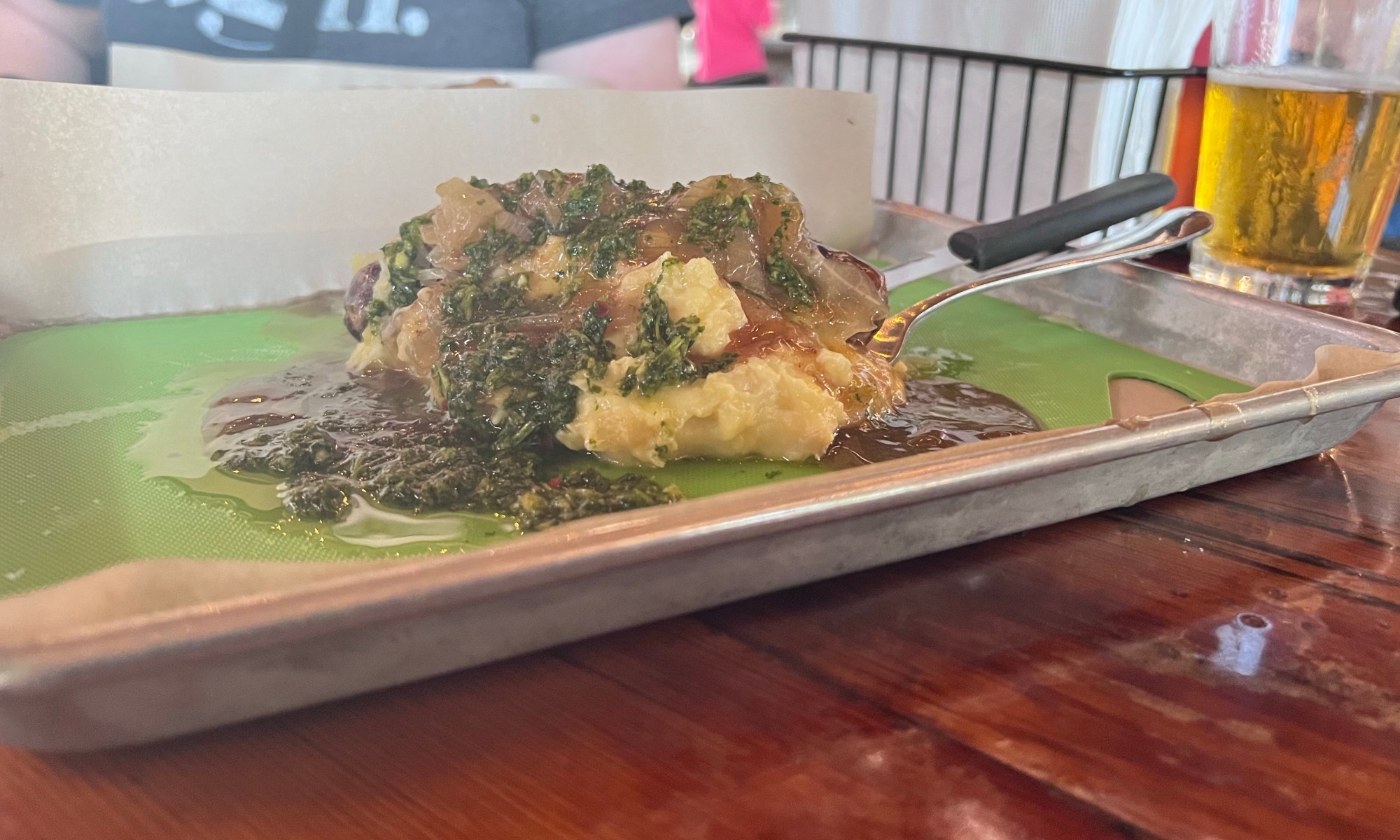 Overall the food was good if not a little under seasoned, the deck atmosphere was nice except there was some event going on that day where an annoying noise happened most of our meal, but of no fault of Vbag, but beware The Village is usually packed with people and activities. They were “understaffed” with two servers, but they had 4 different food runners, so I’m not sure why the server thought they were so understaffed, but alas I just review, I don’t manage. I’d rexamend this as a stop if you are in Sunriver for sure.