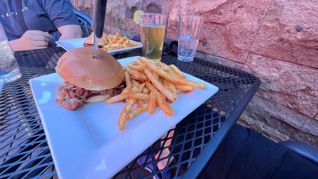 Now I usually don’t do this, but I’m starting with the fries 🍟 . These were the best fries I think I have ever had. They were a great temperature, crispy, seasoned, and flavorful. I had some malt vinegar on them & a side of ranch and that was all I needed. Best fries 🍟 in C.O so far! As for the pulled pork 🐖 sandwich 🥪, I was a little hesitant with the pepper jack combo with the pork, but I’ll tell you that small amount of heat paired with the crispy fried onion straws really elevated this sandwich to another level.