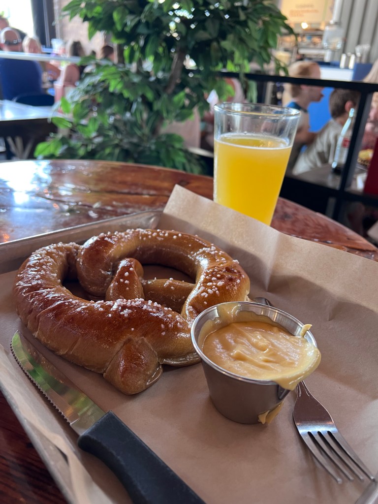 We opened up with the 12” Pretzel and cheese for an appetizer, but before we received that we were brought out some warm bread and chimichurri. honestly the bread fell apart easily, and was not easy to dip in the sauce. And this will be the last complaint you’ll hear from me.
