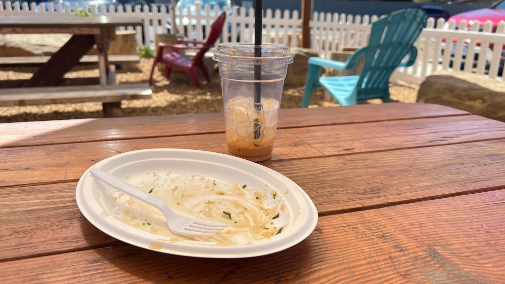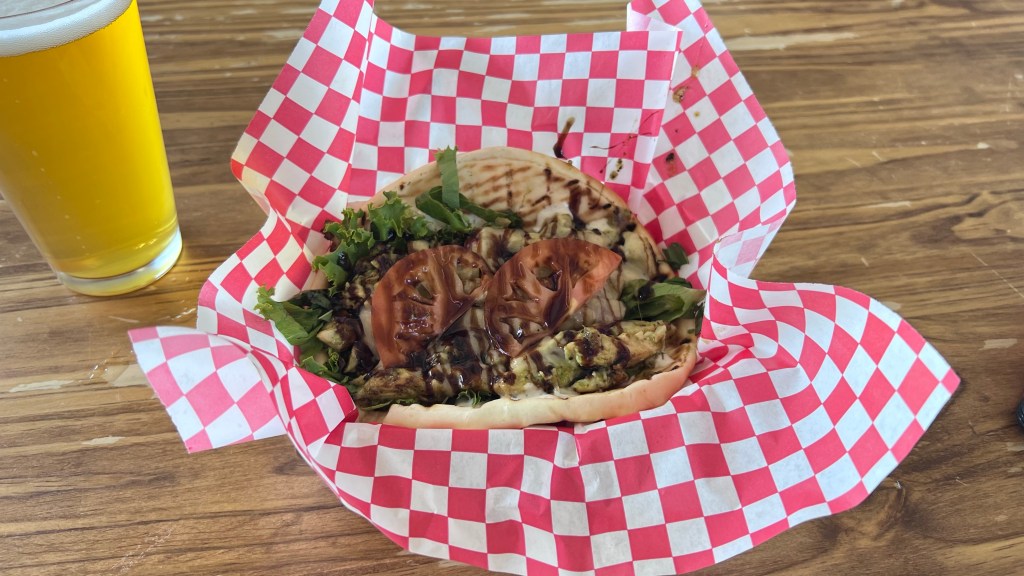 We went with the garlic fries on their recommendation & I have to say, this sandwich was delicious & the fries were crispy & flavorful. The bread, like at Sunriver Brewing Co, was hard, but it worked well with the wet textures of the sandwich and sauce, it had a crunch to it, not chewy like Sunriver Brewing Co.. The cheese melted nicely keeping things mostly intact, and the balsamic glaze was an absolute game changer to my taste buds.