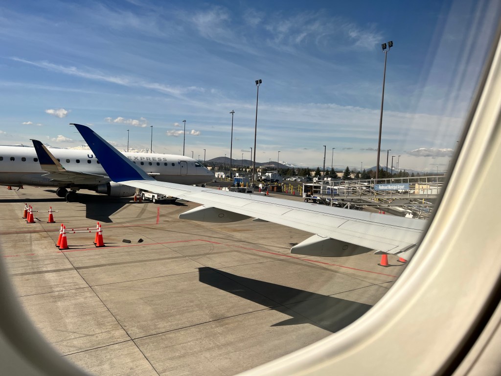The night before pickup I was sent a text to upload a selfie holding my license, a copy of my insurance card, and sign the digital paperwork, so I sent that off and went to bed. We woke up and I got dropped off at the airport and I quickly got through TSA, go a cup of coffee and a muffin, and sat down to listen to a podcast while I waited for boarding. And then… it happened.