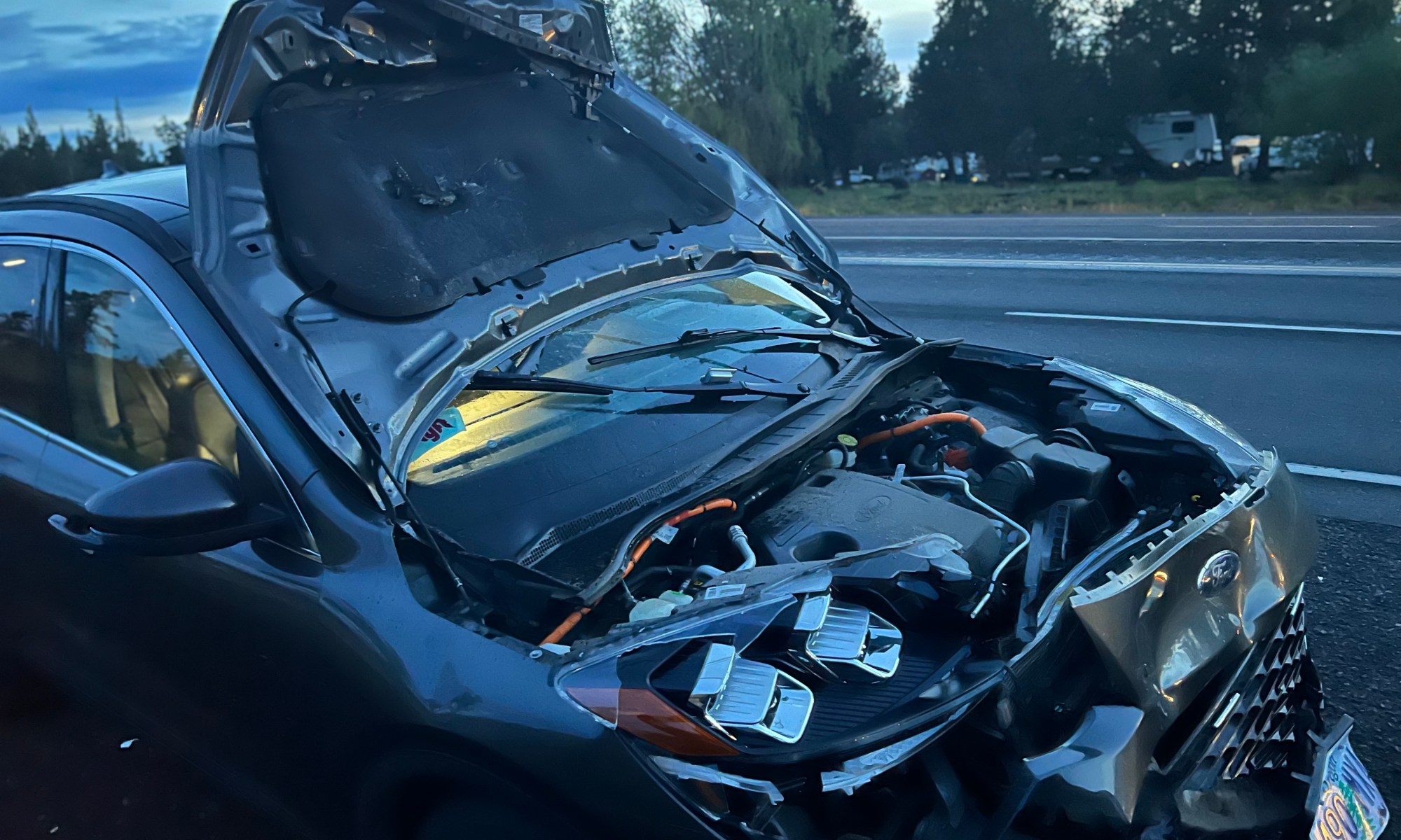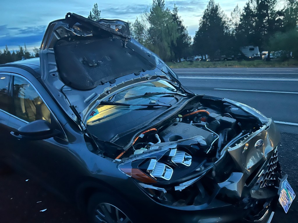 Was on my way to Redmond at dusk a few nights ago and all of a sudden the gas pedal stopped working and I looked up and the windshield was black (turn out it was the hood), had a deer jump out on Hwy 97 N a few miles south of Redmond.